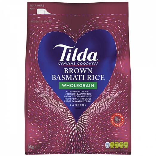 Wholegrain Brown Basmati Rice. With the bran layer intact, the rice has a distinctive nutty flavour. It is rich in nutrients and natural fibre, making it the ultimate rice for a healthy lifestyle. It also has a low to medium GI. It is delicious in soups, salads, vegetable mixtures such as ratatouille and stronger flavoured casseroles.p